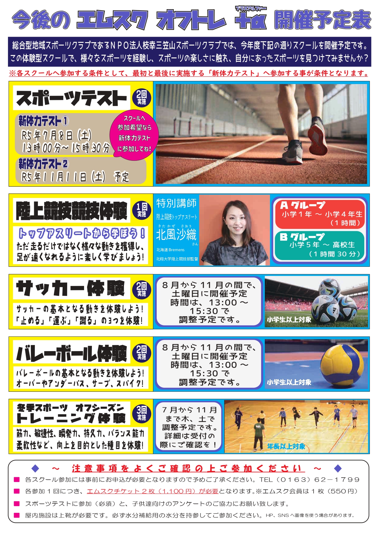 7⃣ エムスクオフトレ+α「オフトレ体験」① 9月30日(土) に開催予定。