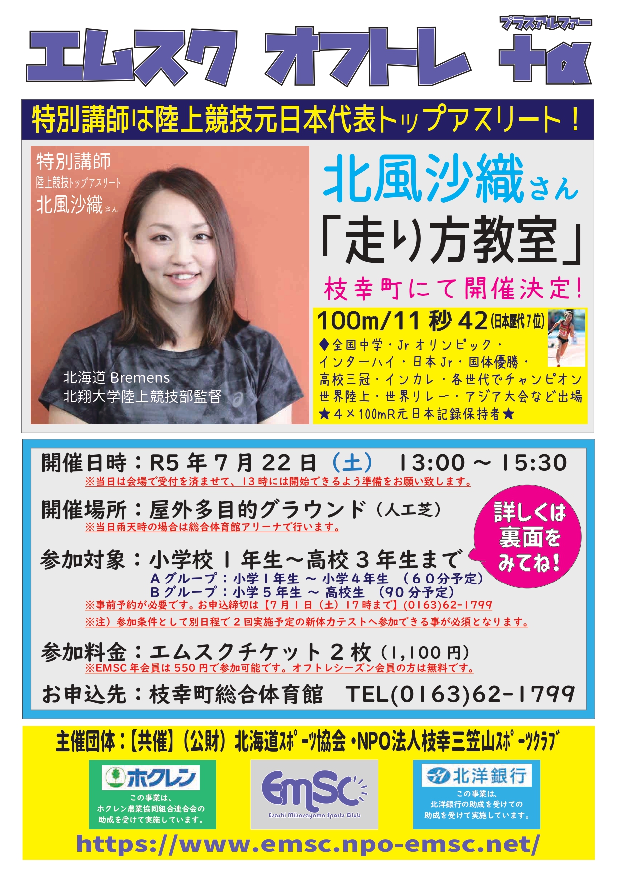 2⃣ エムスクオフトレ+α北風沙織さん「走り方教室」 7月22日(土) 終了しました。