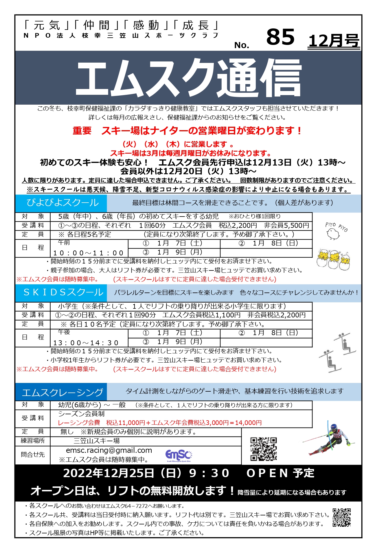 令和4年度の枝幸町三笠山スキー場のオープン日をお知らせします。