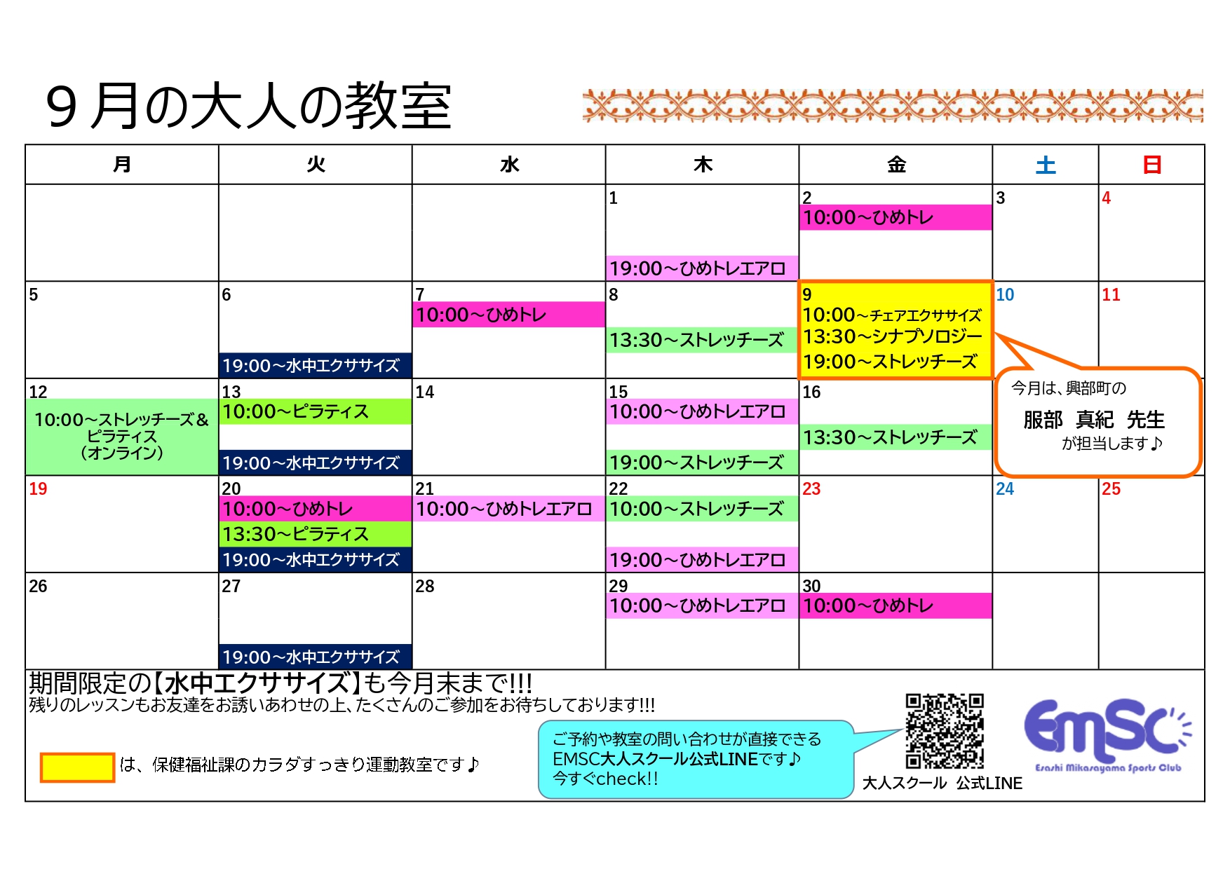 9月もエムスクスクールで、気持ちの良い汗をかきましょう!