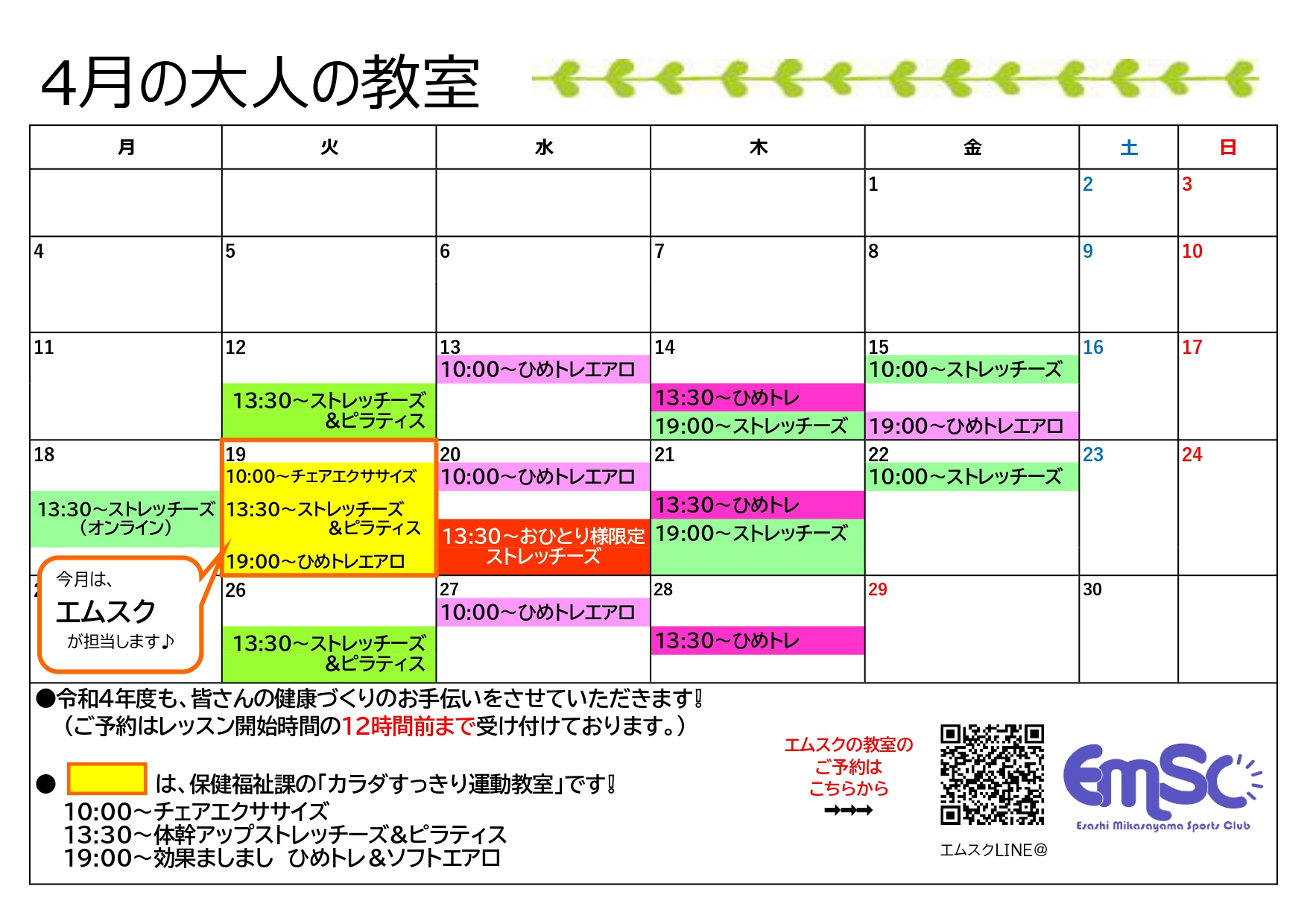 🌸4月の大人の教室のお知らせ🌸( 4/8更新)