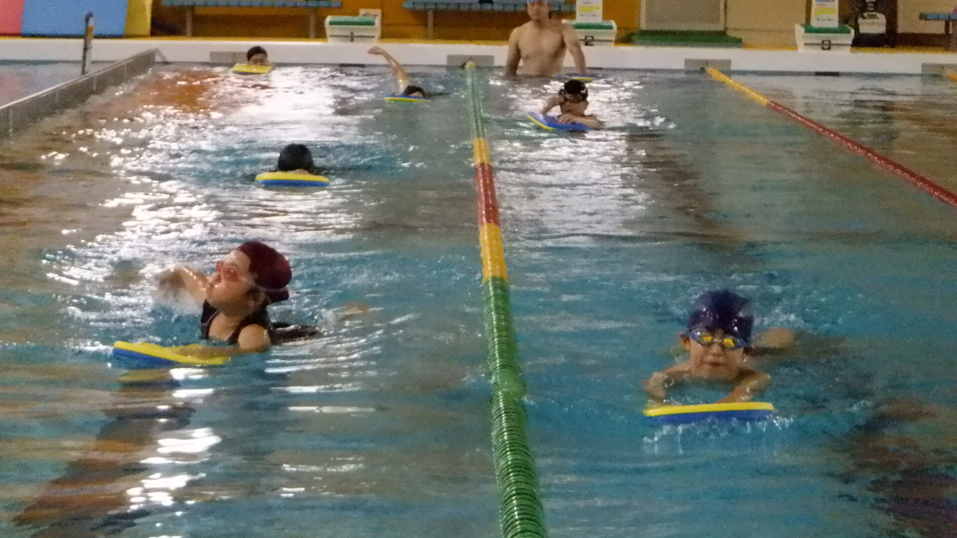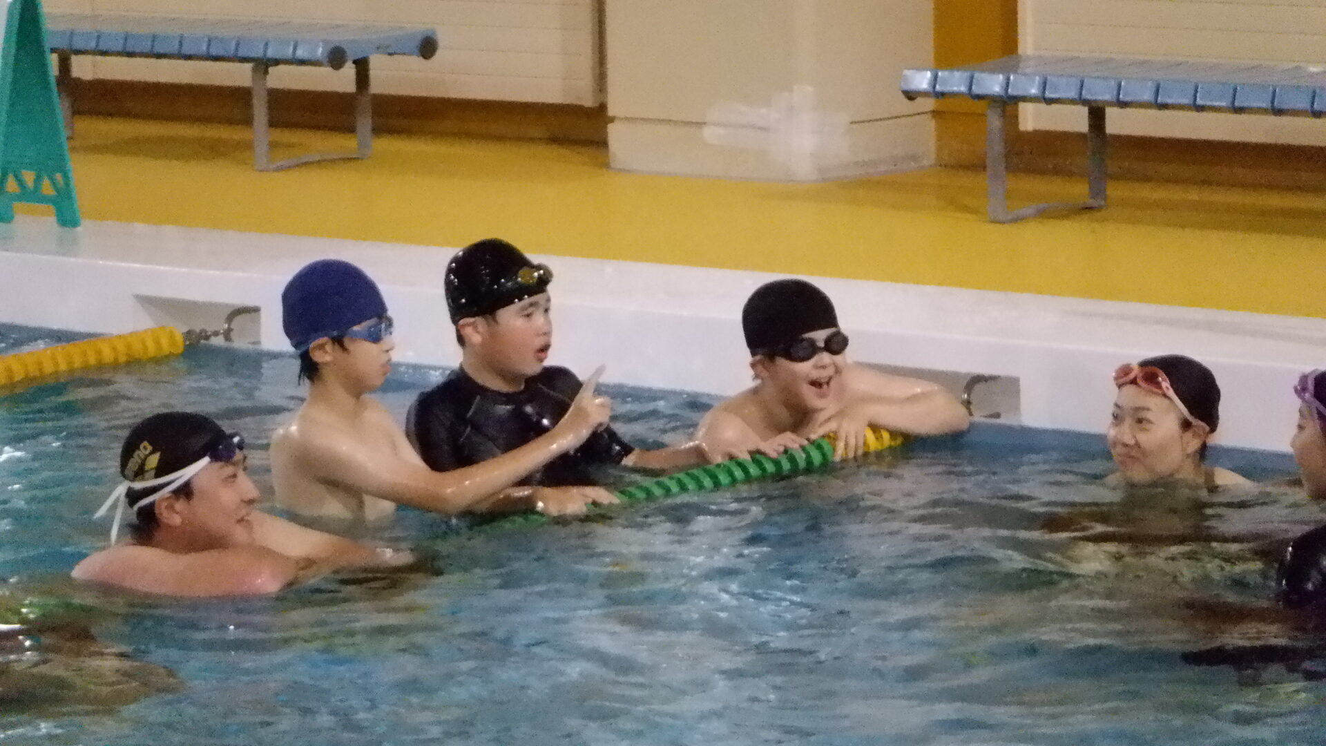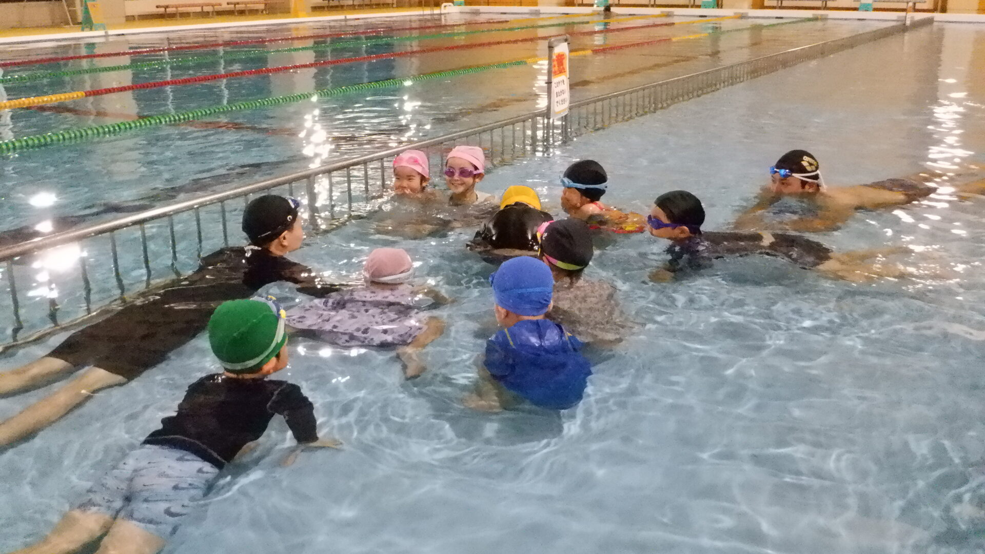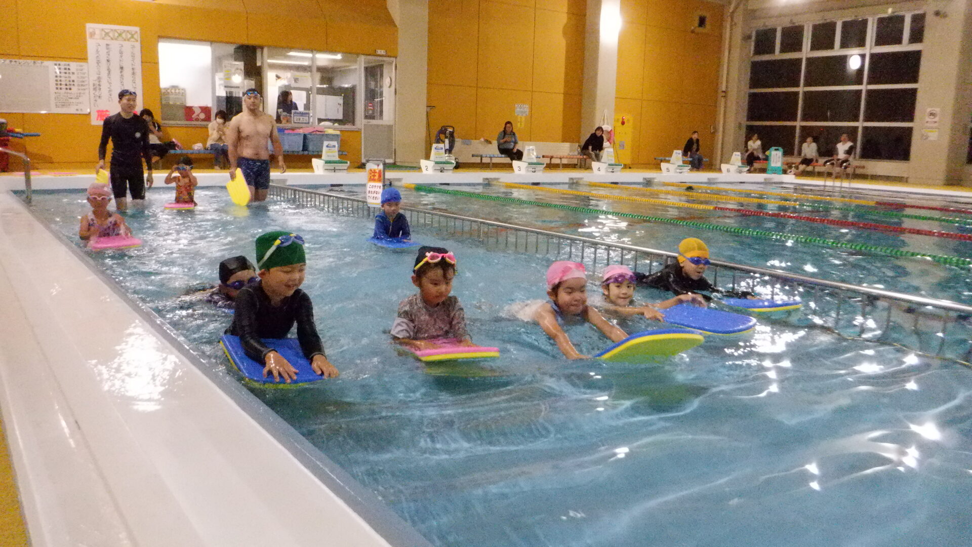 最初は水に慣れるため、水に顔をつけたり、潜ったり、足をバタバタしたりなど、、、
