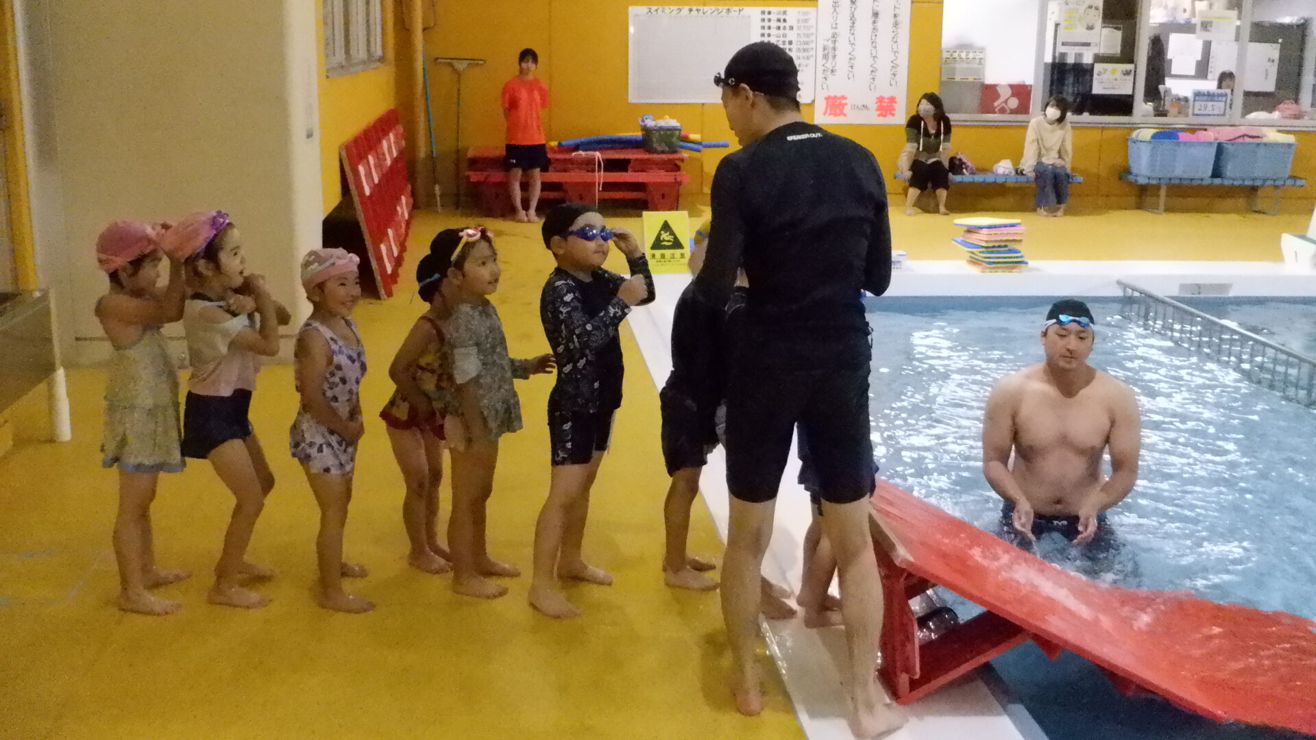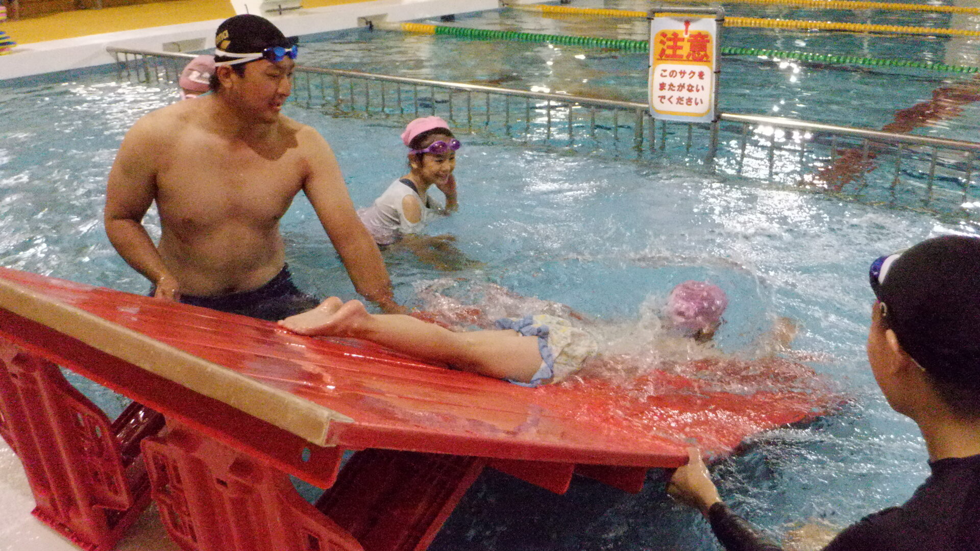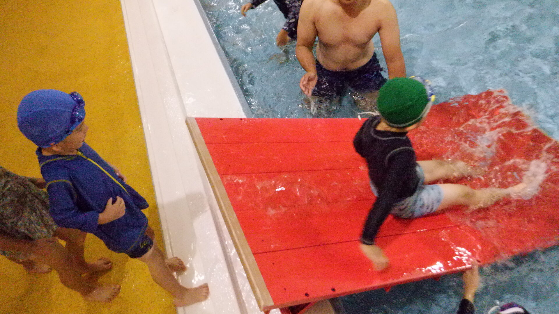 頭からプールに入水する子もいて、それぞれの滑り方を楽しんでいました!