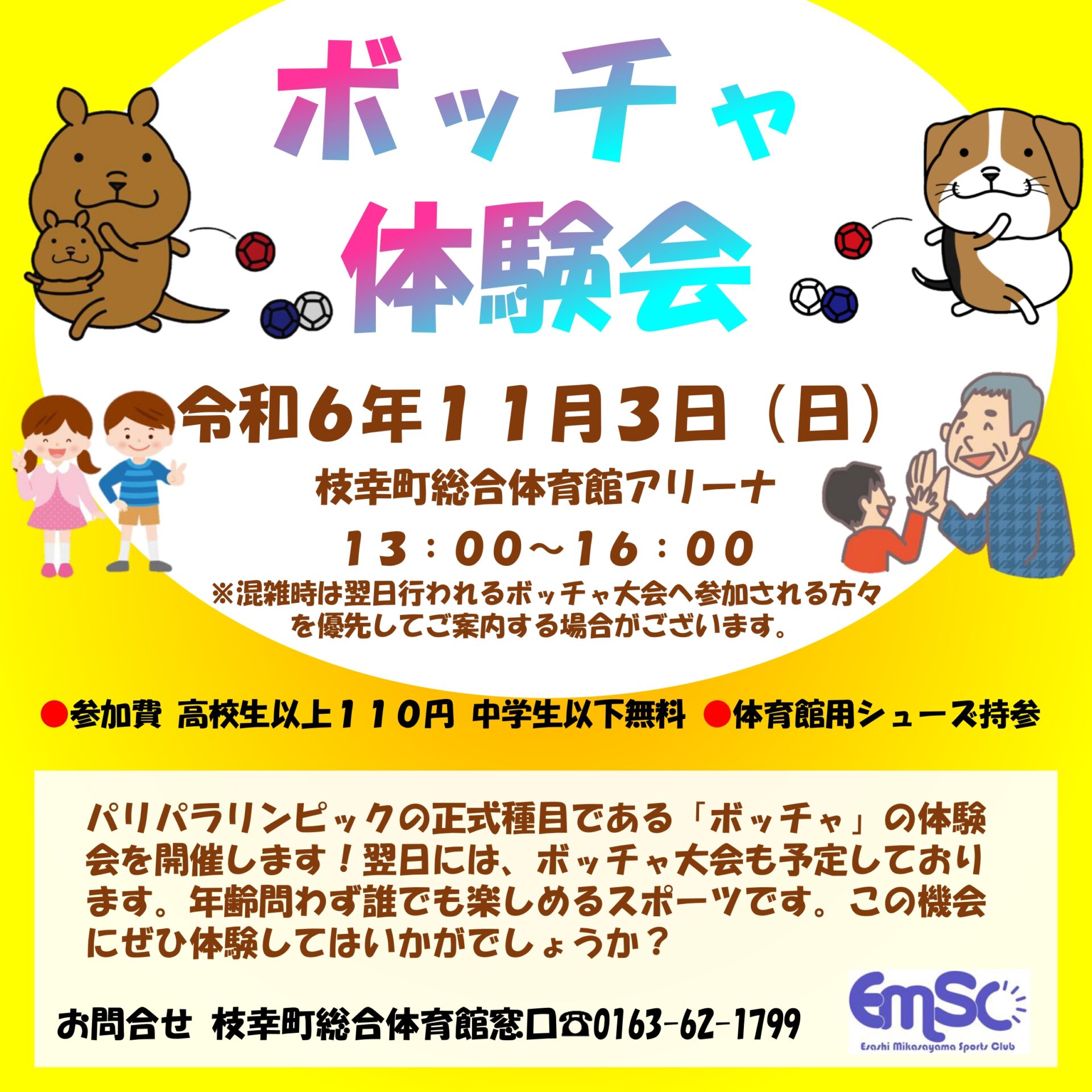11月4日(月)、総合体育館 アリーナにて2024 JOY☆すぽ ボッチャ大会が開催されます!