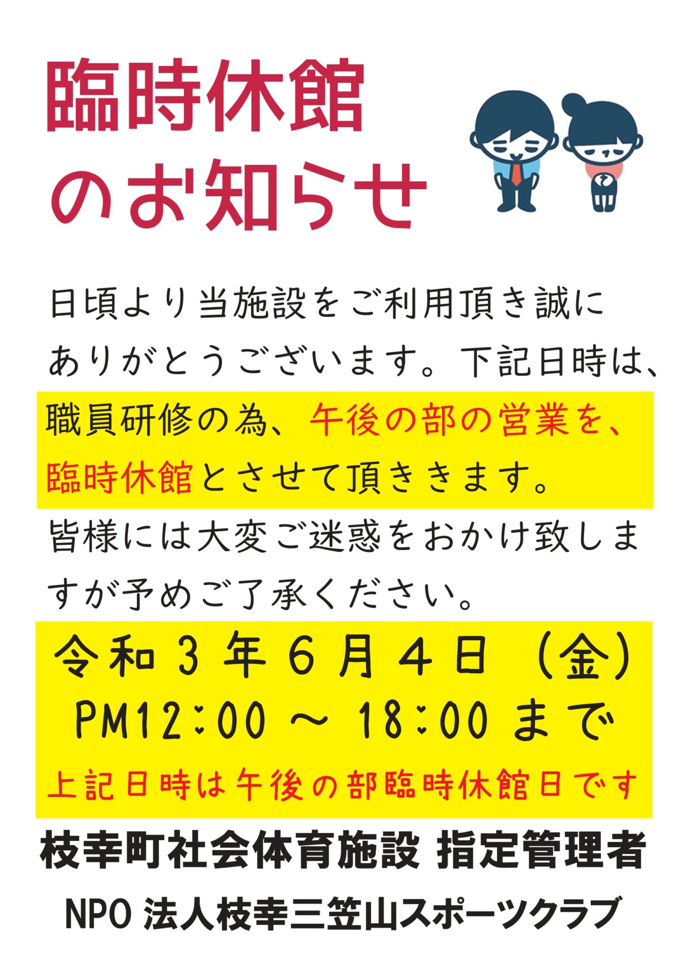 また、7月以降の日程については改めてお知らせいたしますので、何卒宜しくお願い致します。