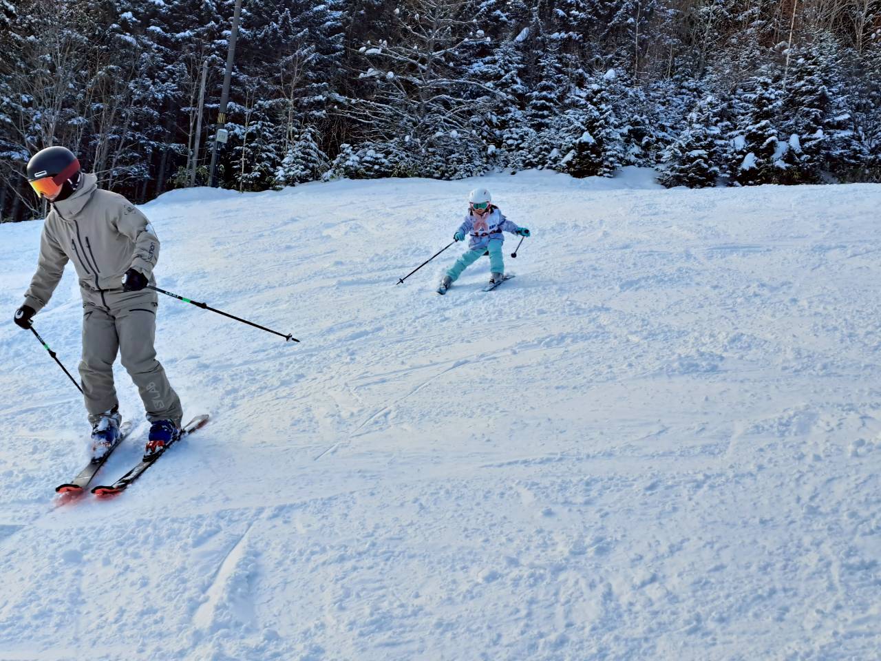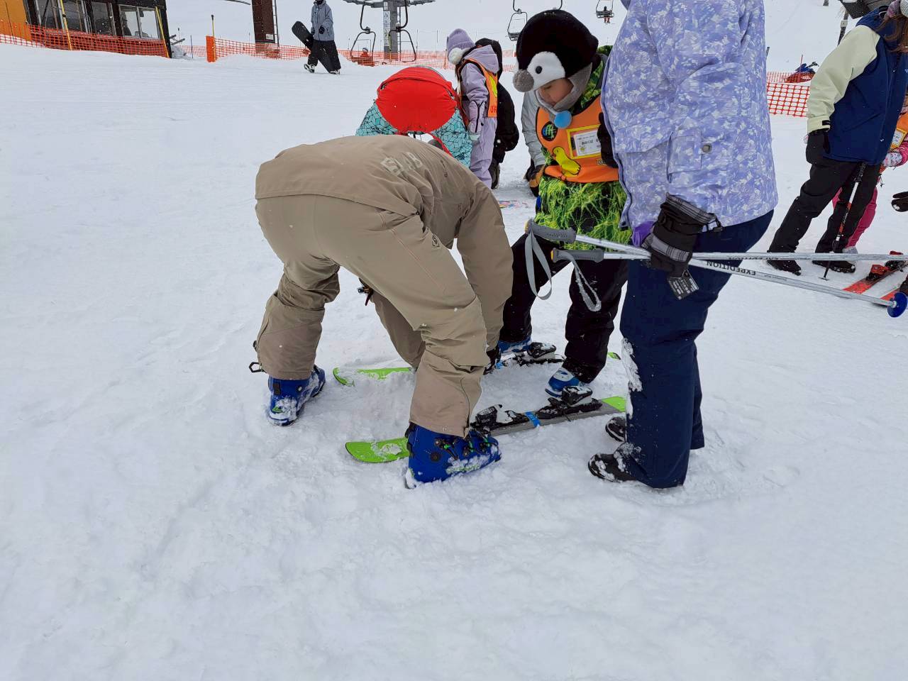 ぴよぴよスキースクールでは、初めてのスキーへの挑戦、先週の復習など各々のレベルに合わせて実施しました。