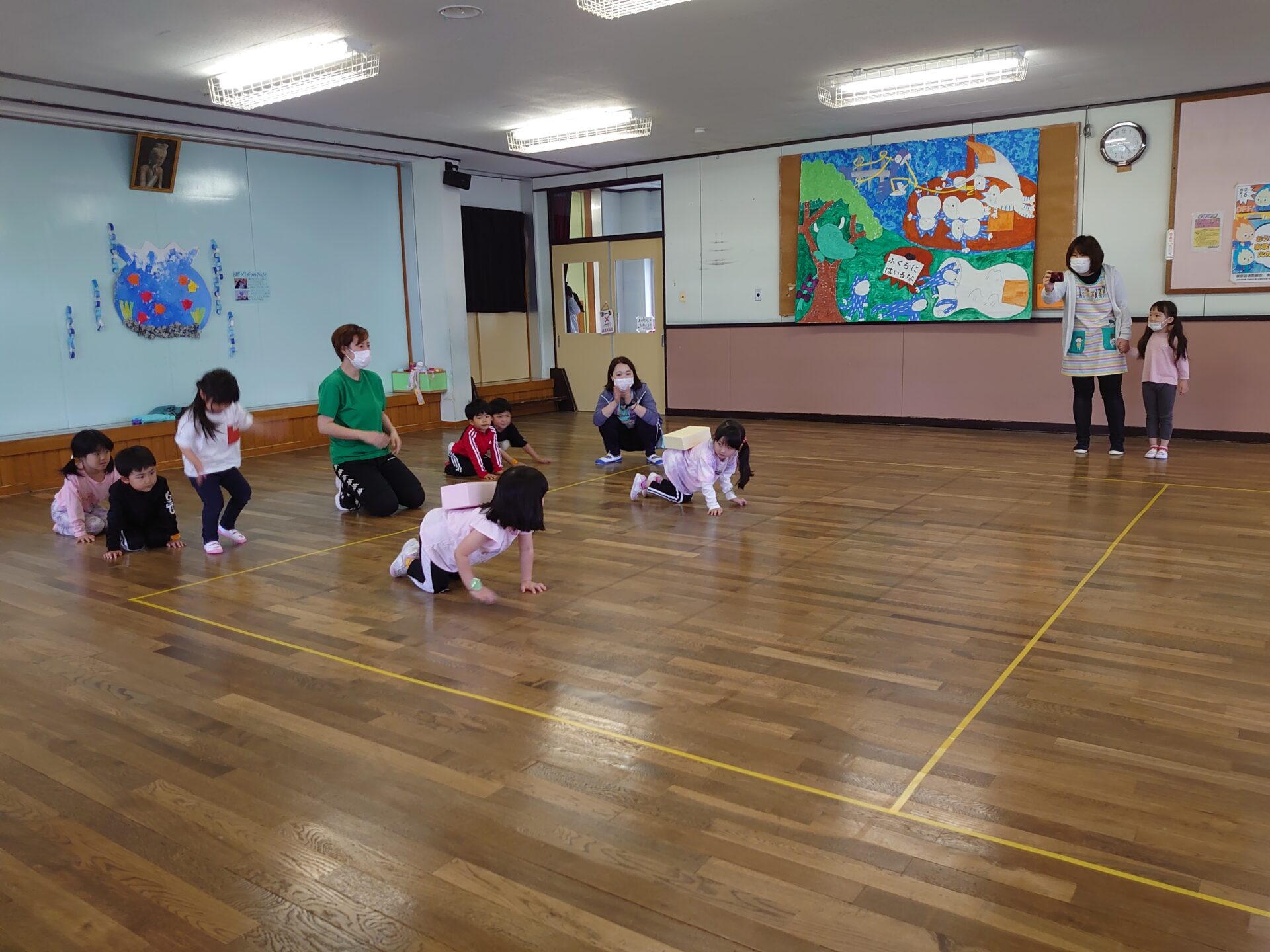 今回の身体遊びは年中・年長で、「跳び箱運動」でした♪