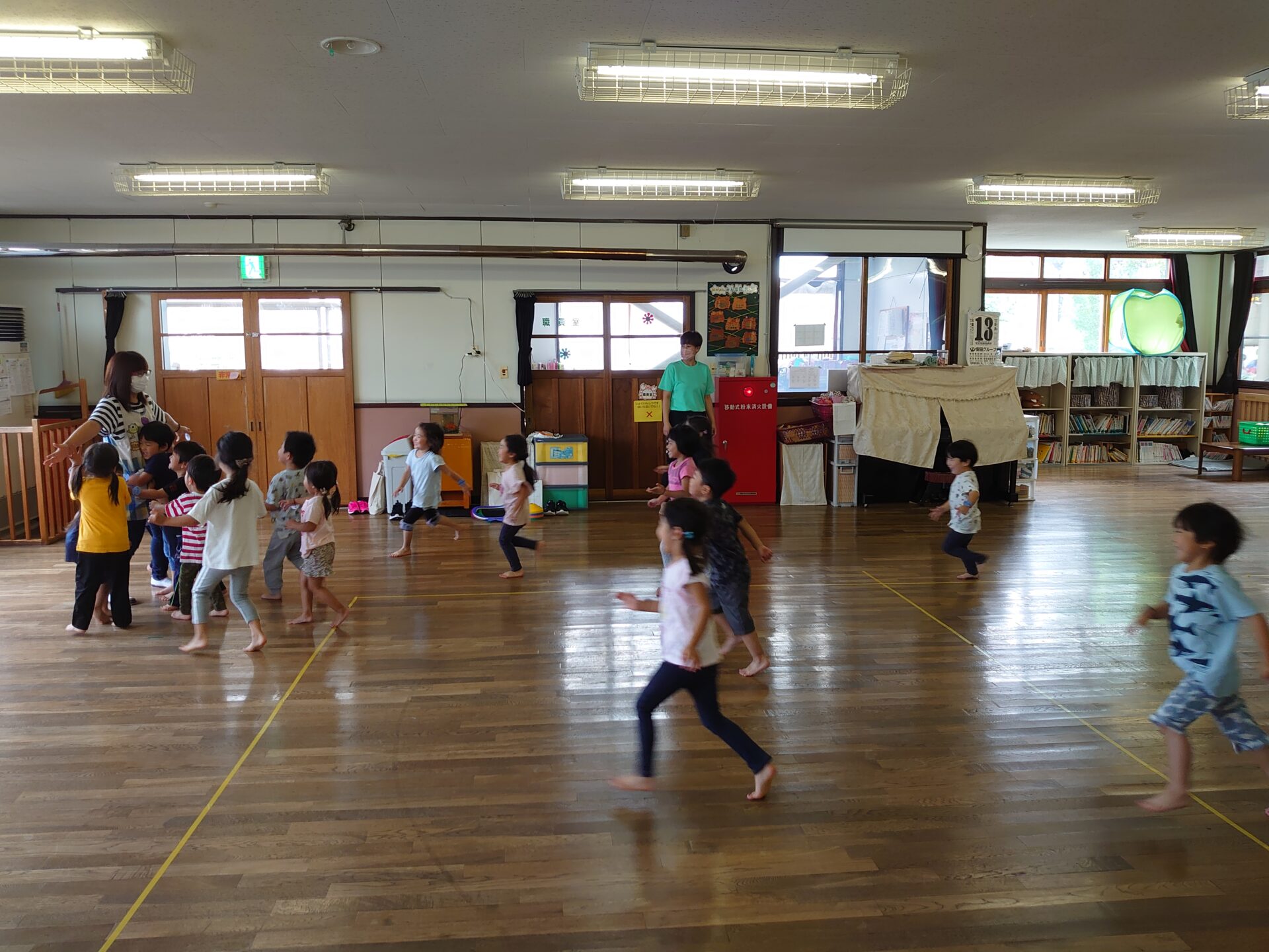 今回の身体遊びは、年中さんで「跳び箱・縄跳び遊び」を行いました。