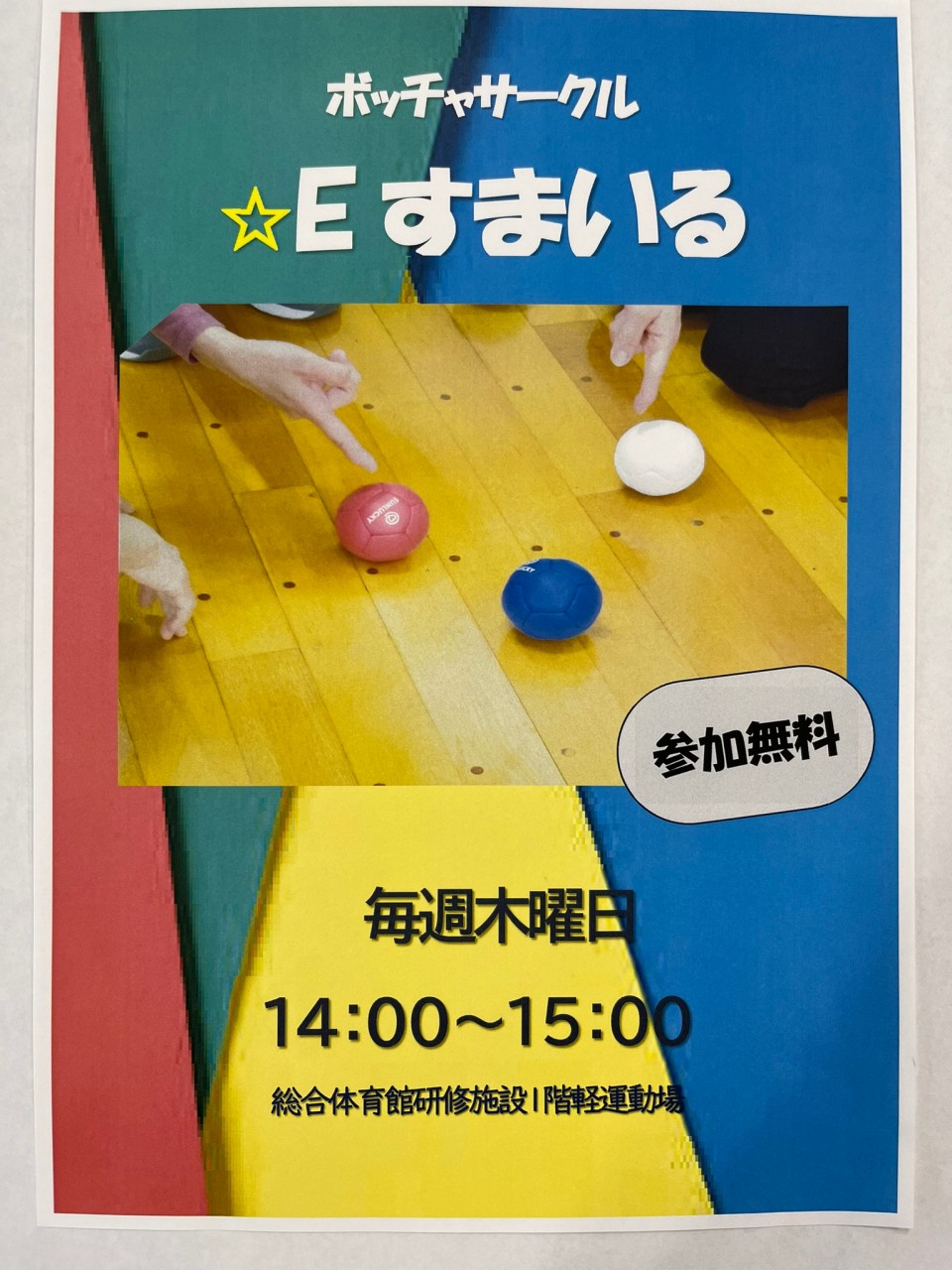 10月から毎週開催になったEすまいる(ボッチャサークル)自主的に地域の方が中心となり皆さんで楽しんでいます。Eすまいるはどなたでも参加できます。まだ体験されてない方も運動靴があればいつでも体験できます。